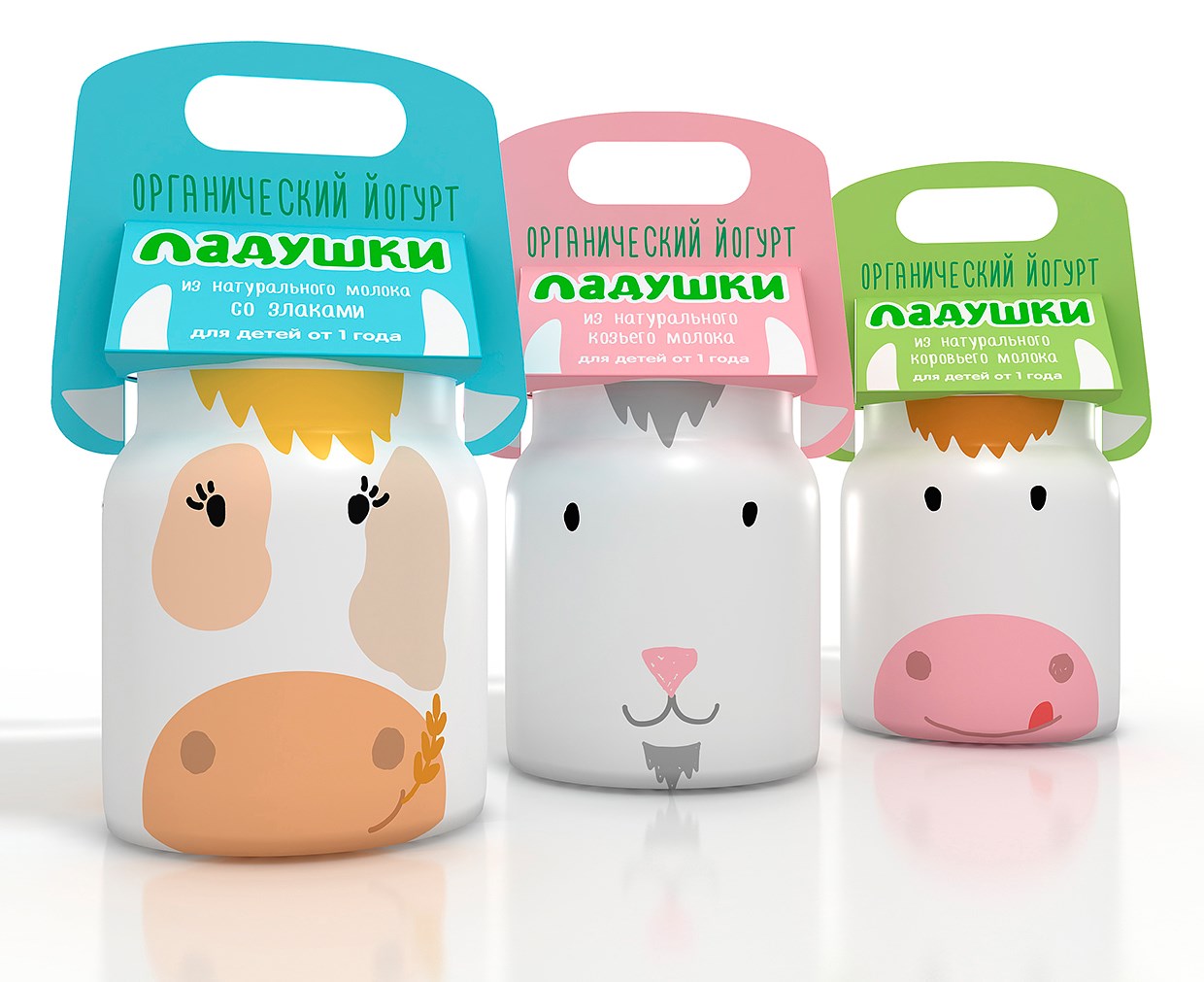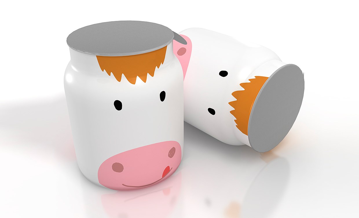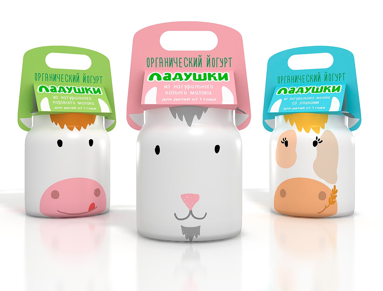 В разработке упаковки за основу взята форма бидона, как отсыл к свежести и натуральности молока, из которого изготовлен йогурт. Образы животных создают игровую составляющую, а также помогают различить продкуты между собой.